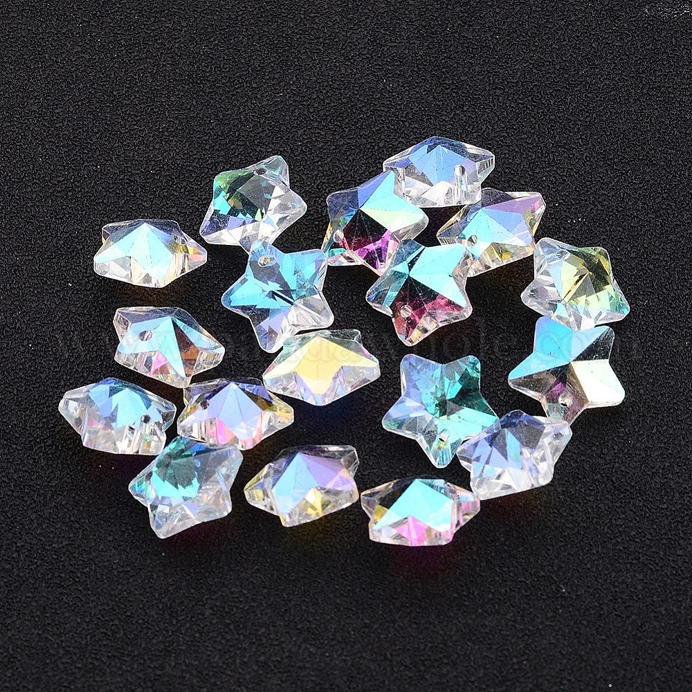 • Прозрачный АВ Стеклянные подвески, граненый Рождественская звезда, ясно AB, с покрытием AB цвета, 13x7 мм, отверстие : 1 мм