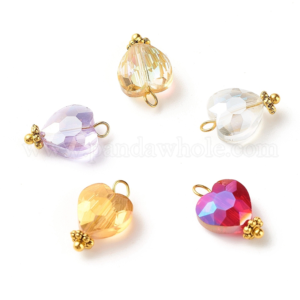 • (52) Непрозрачная лаванда Подвески из гальванических бусин, граненые, с латунными штифтами с шаровой головкой и распорными бусинами из сплава тибетского стиля, сердце, золотые, разноцветные, 15x9x5.5 мм, отверстие : 1.6 мм