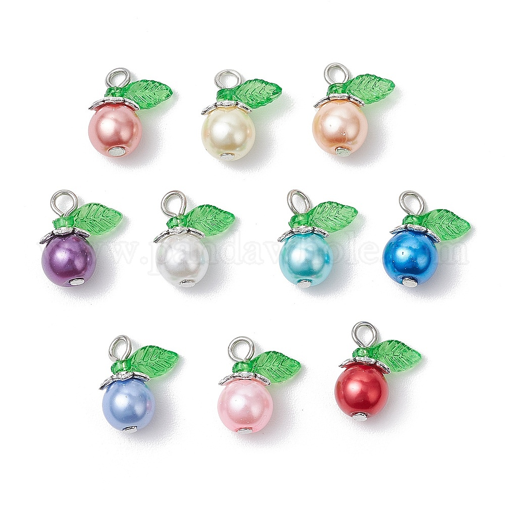 10 шт. Стеклянные подвески, круглые подвески, с железной петлей и акриловыми листочками