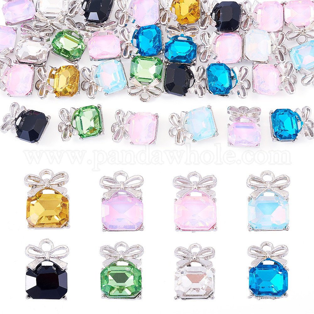 30шт. подвески из сплава и стекла, квадрат с бантом, граненые