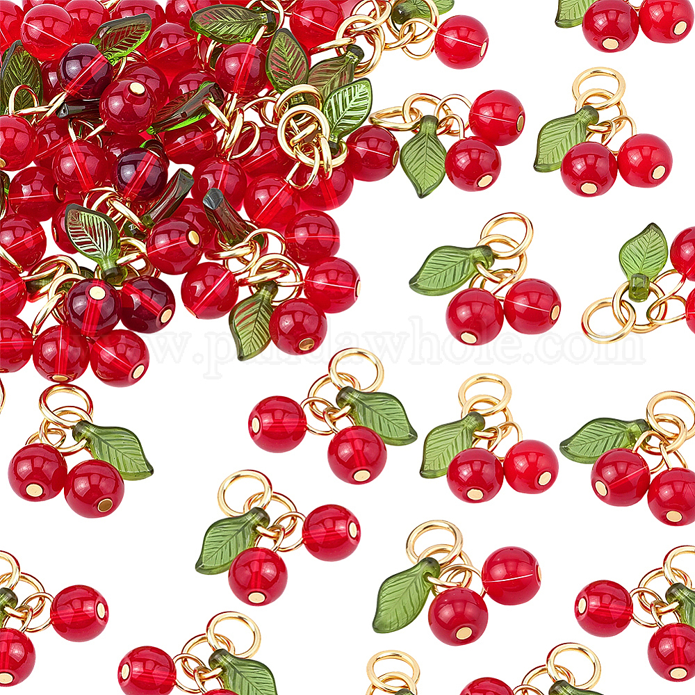 50Подвески из стекла и акрила из бисера, с золотыми 304 кольцами из нержавеющей стали, черри прелести