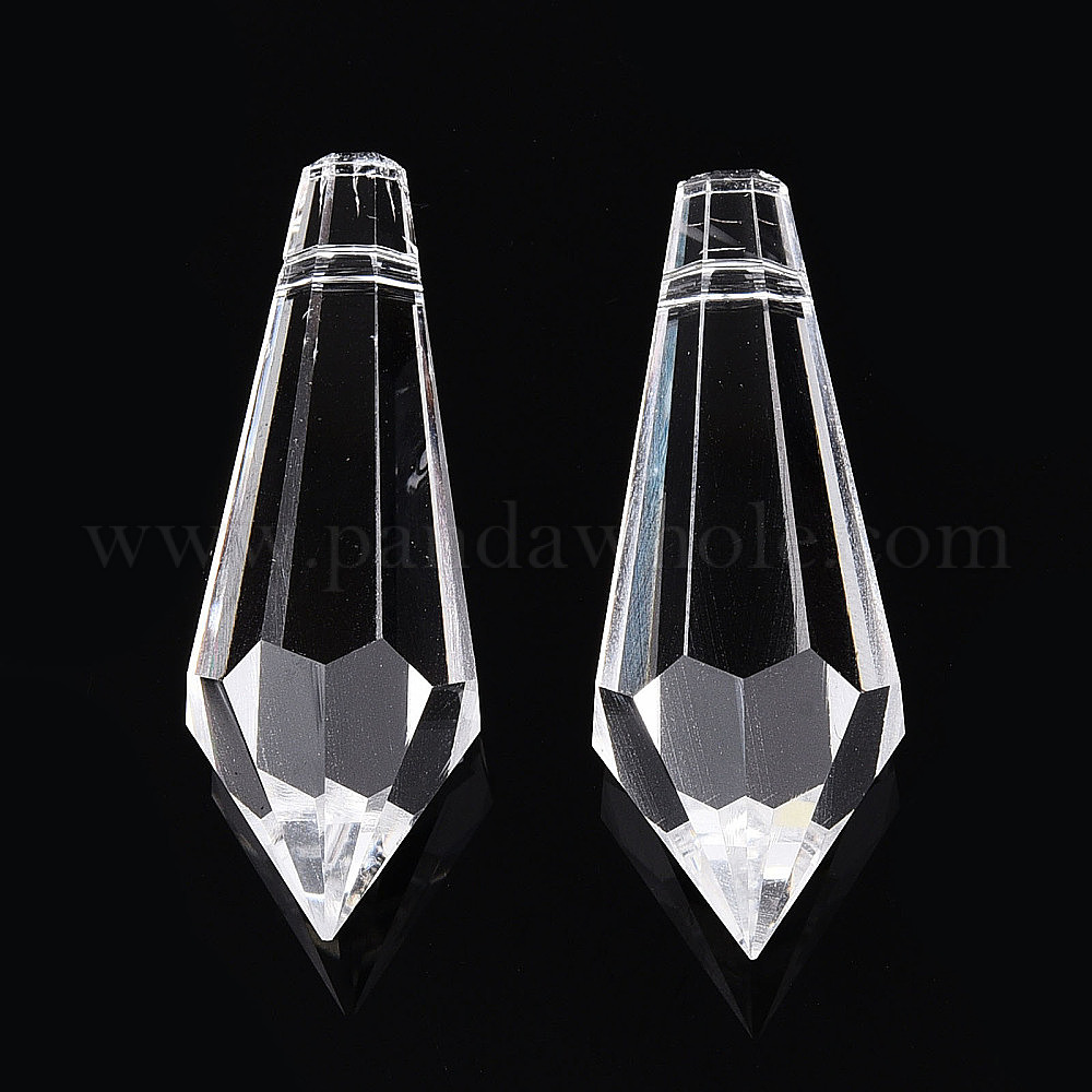 • Прозрачный Прозрачные стеклянные подвески, конус, граненые, прозрачные, 35~38x12.5~14 мм, отверстие : 1.5~1.6 мм