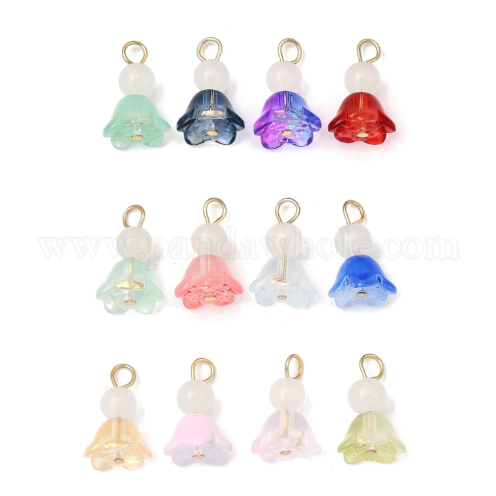 Подвески из прозрачного стекла, окрашенные распылением, дождливая кукла, с 304 петлей из нержавеющей стали, реальный 18 k позолоченный (035CBC)