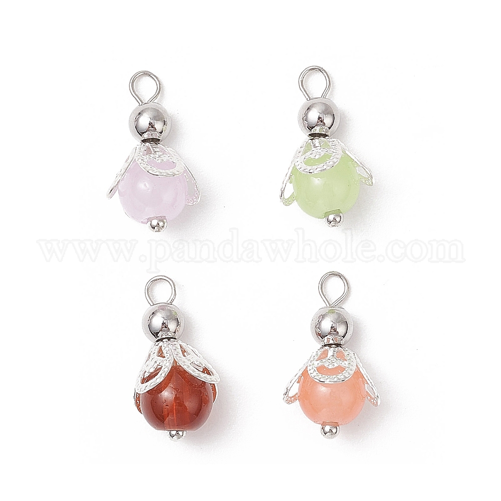 • (52) Непрозрачная лаванда 4 шт. 4 цвета, имитация нефрита, подвески из стекла, окрашенные методом выпекания, круглые, с латунной фурнитурой , разноцветные, 15.5x9 мм, отверстие : 1.8 мм, 1 шт / цвет
