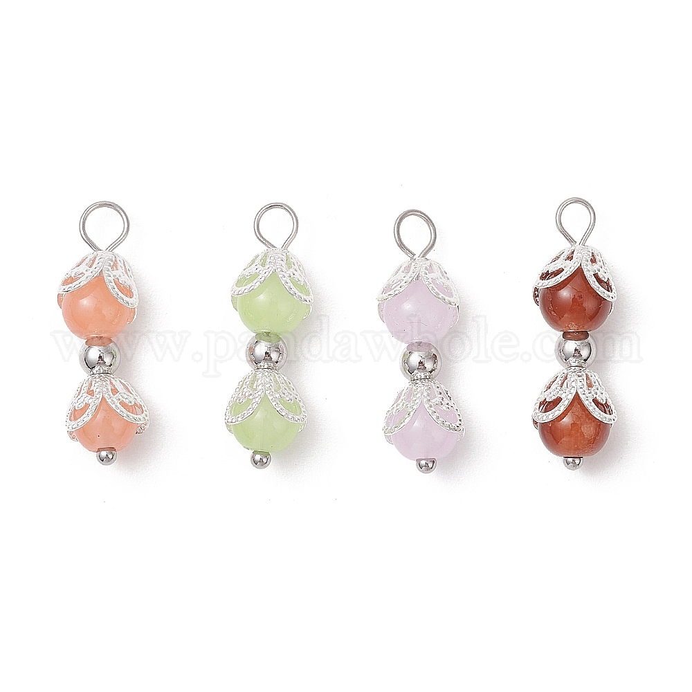 4 шт. 4 цвета, имитация нефрита, подвески из стекла, окрашенные методом выпекания, круглые, с латунной фурнитурой (035W6W)