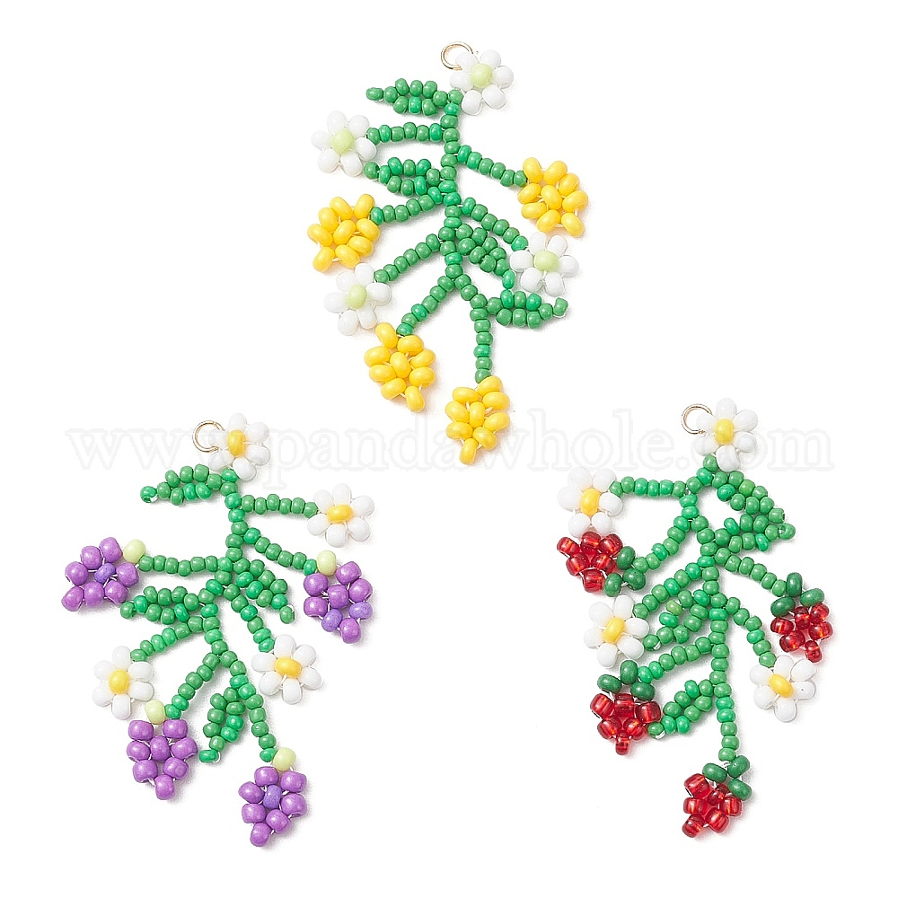 3 шт. большие подвески из стеклянных бусин, цветок (036CWS)