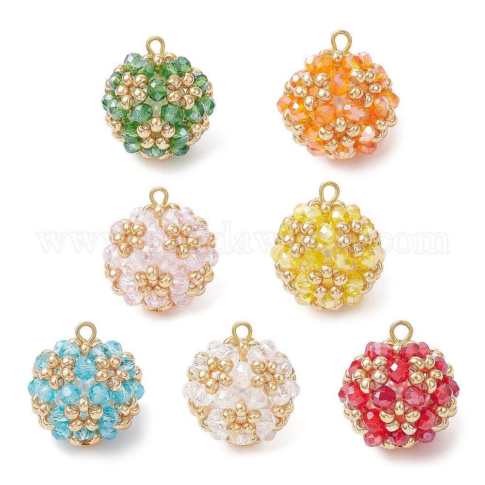 Подвески из гальванического стекла, круглых рокайль и стеклянных бусин-жемчужин, круглые