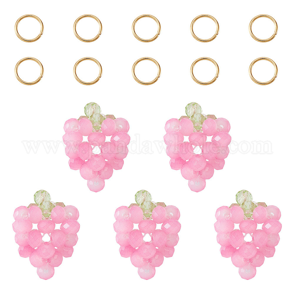 5Подвески из стеклянных бусин, клубника, граненые, с 10шт 304 открытыми соединительными кольцами из нержавеющей стали