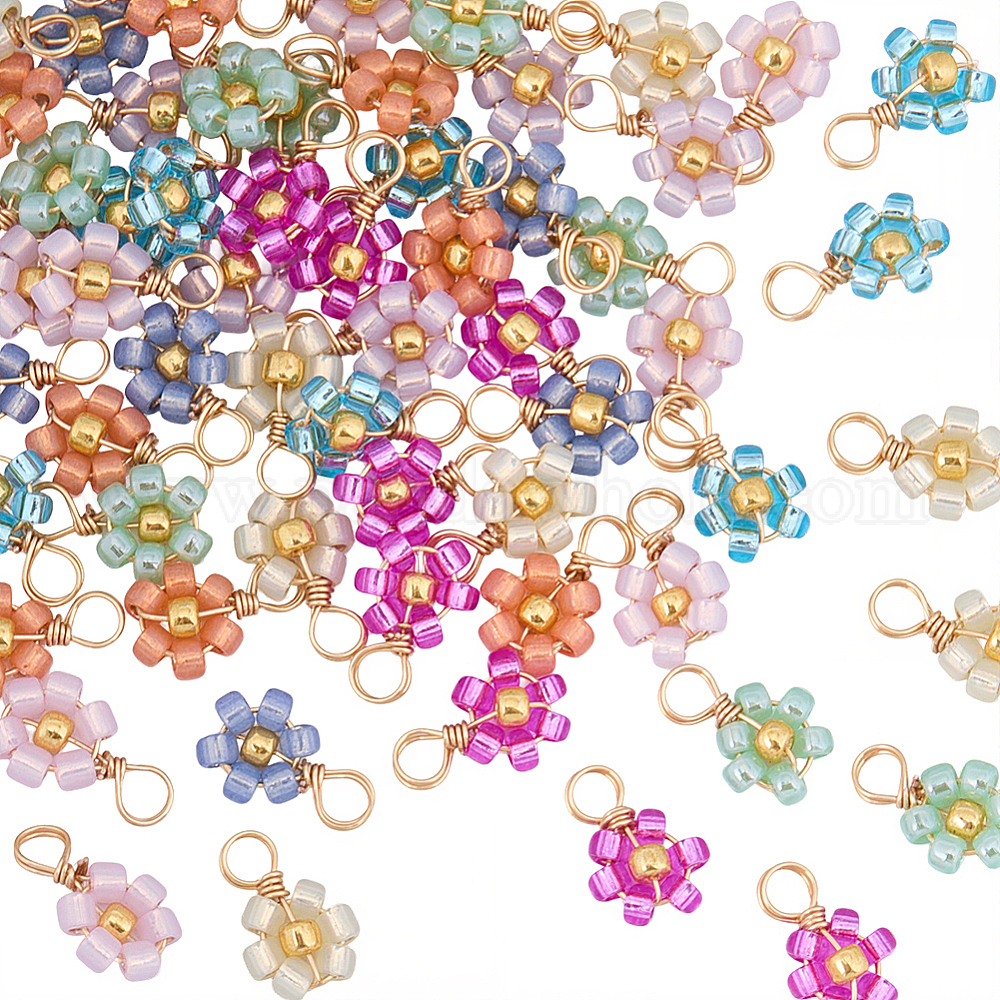 80 шт. 10 наборы подвесок из стеклянного бисера в виде цветов, с настоящей позолоченной медной проволокой 18k