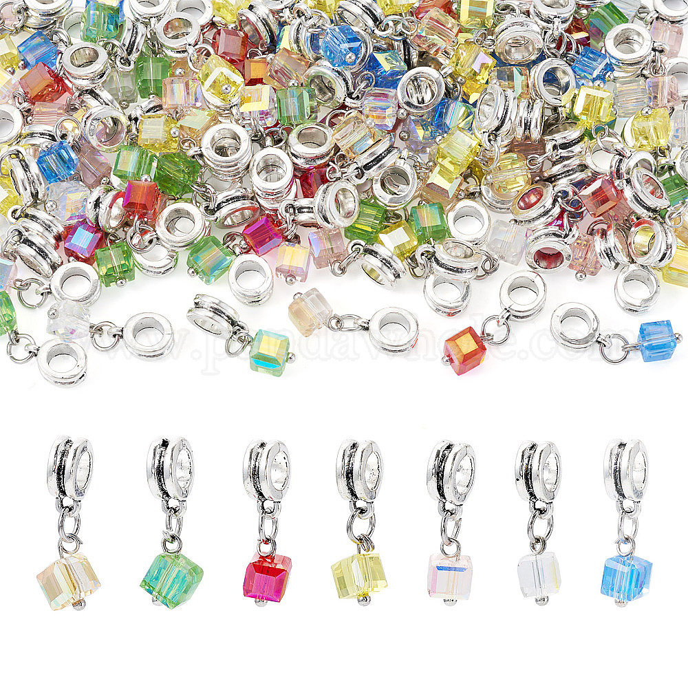 105шт 7 цвета гальванические прозрачные стеклянные подвески, кубические, с петлями из сплава, граненые
