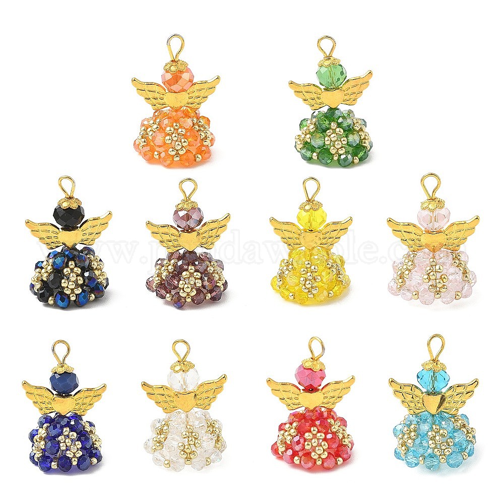 Подвески гальванизируйте стекла, ангел, с золотыми бусинами из сплава и железной петлей, граненые