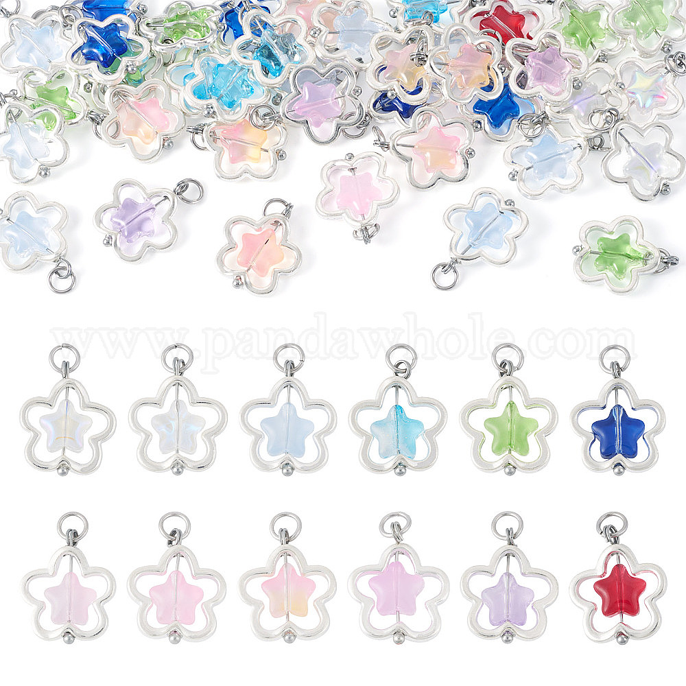 50 шт. подвески из сплава и стекла, звездные подвески с латунной фурнитурой, платина