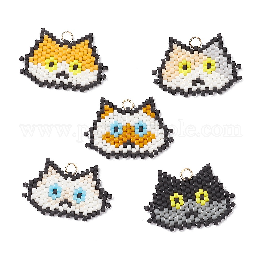 Подвески ручной работы из стеклянных бусин в форме головы кошки, с 304 петлей из нержавеющей стали
