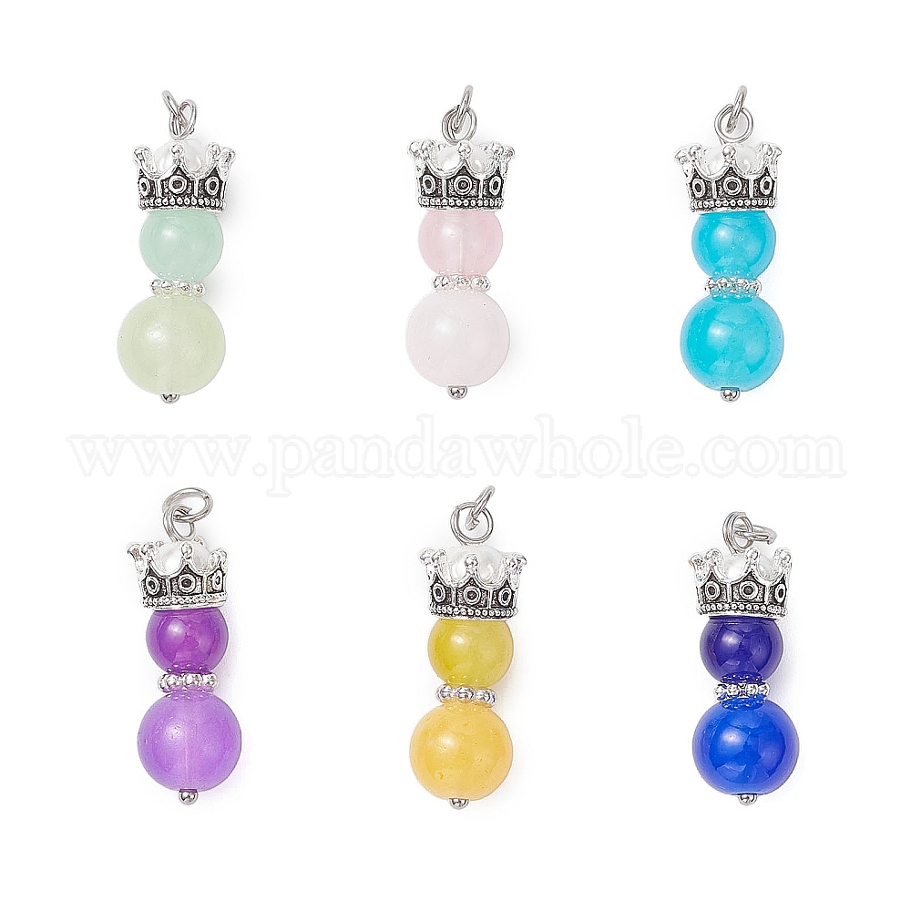 6 шт. 6 цвета, имитация нефрита, подвески из стекла, окрашенные методом выпекания, корона, с цветным стеклянным жемчугом и сплавом и 304 соединительным кольцом из нержавеющей стали