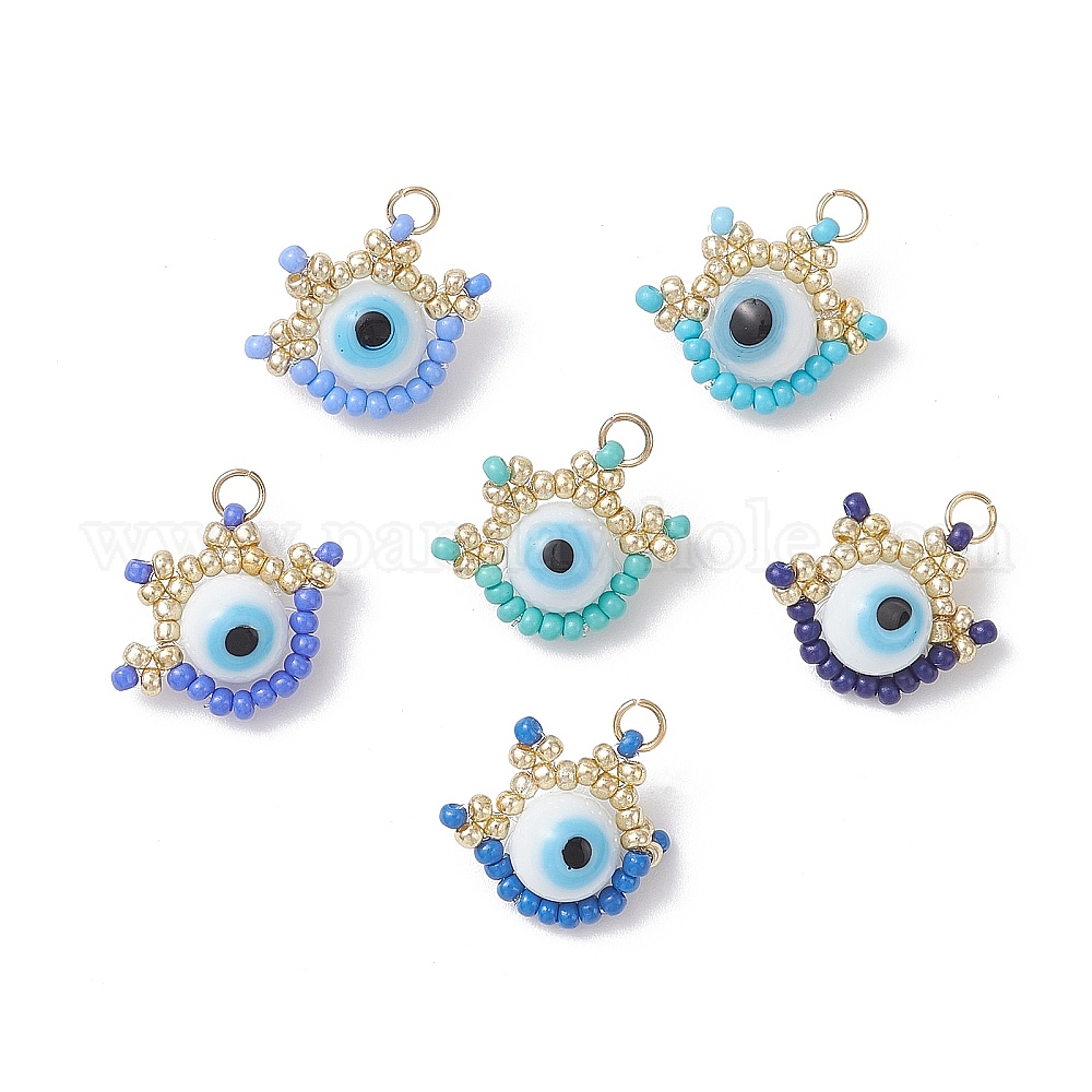 Подвески из стеклянных бусин, злые глаза, с 304 кольцами из нержавеющей стали и лампворком