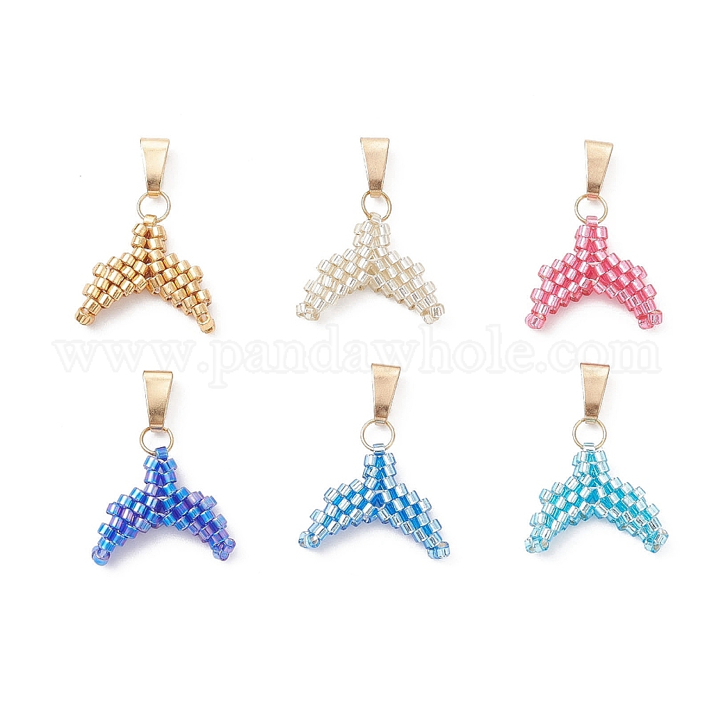 Подвески из стеклянных бусин в виде хвоста русалки, с петлей из нержавеющей стали