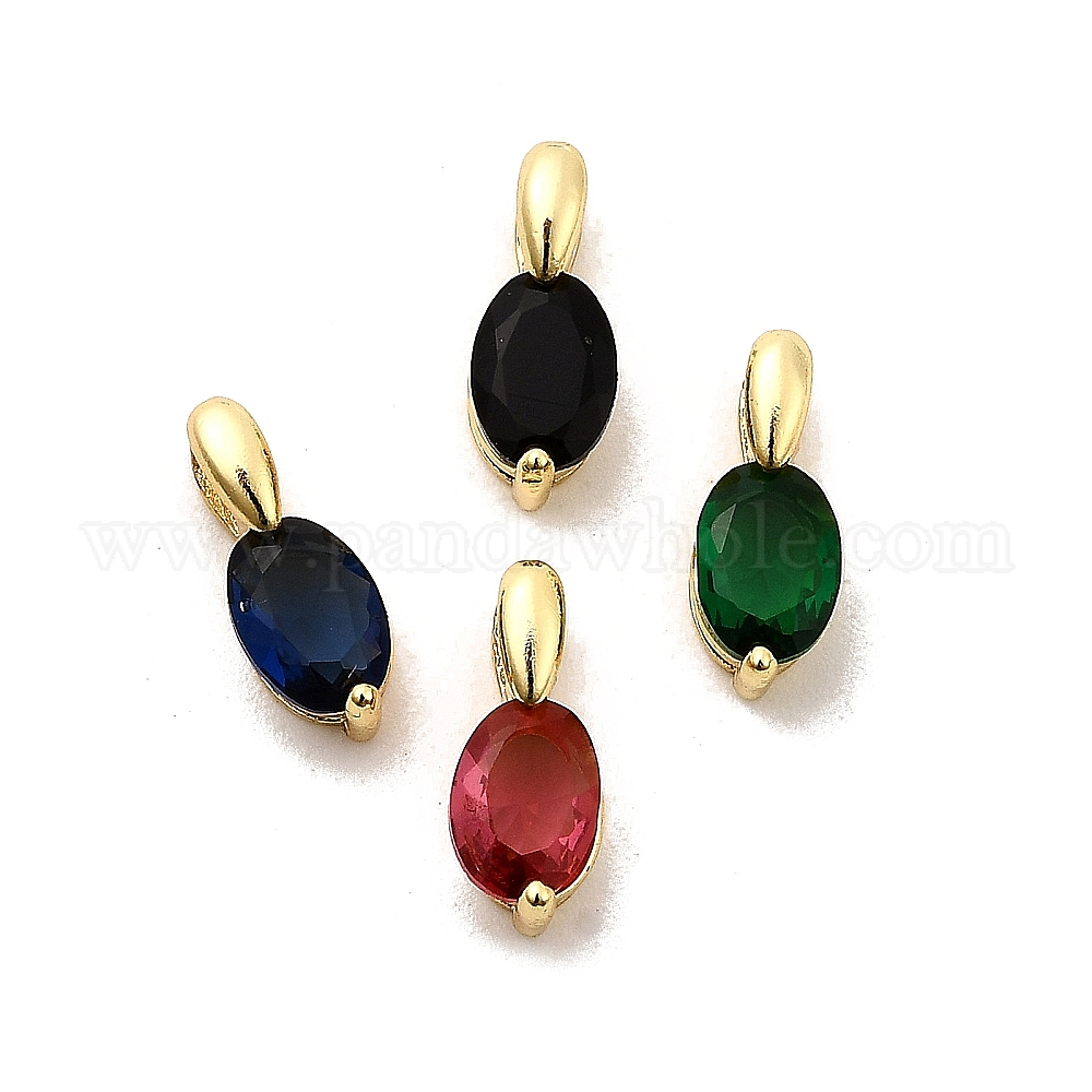 Овальные латунные стеклянные подвески, стойки покрытие, долговечный, без кадмия и без свинца, золотые, граненые (037CDH)