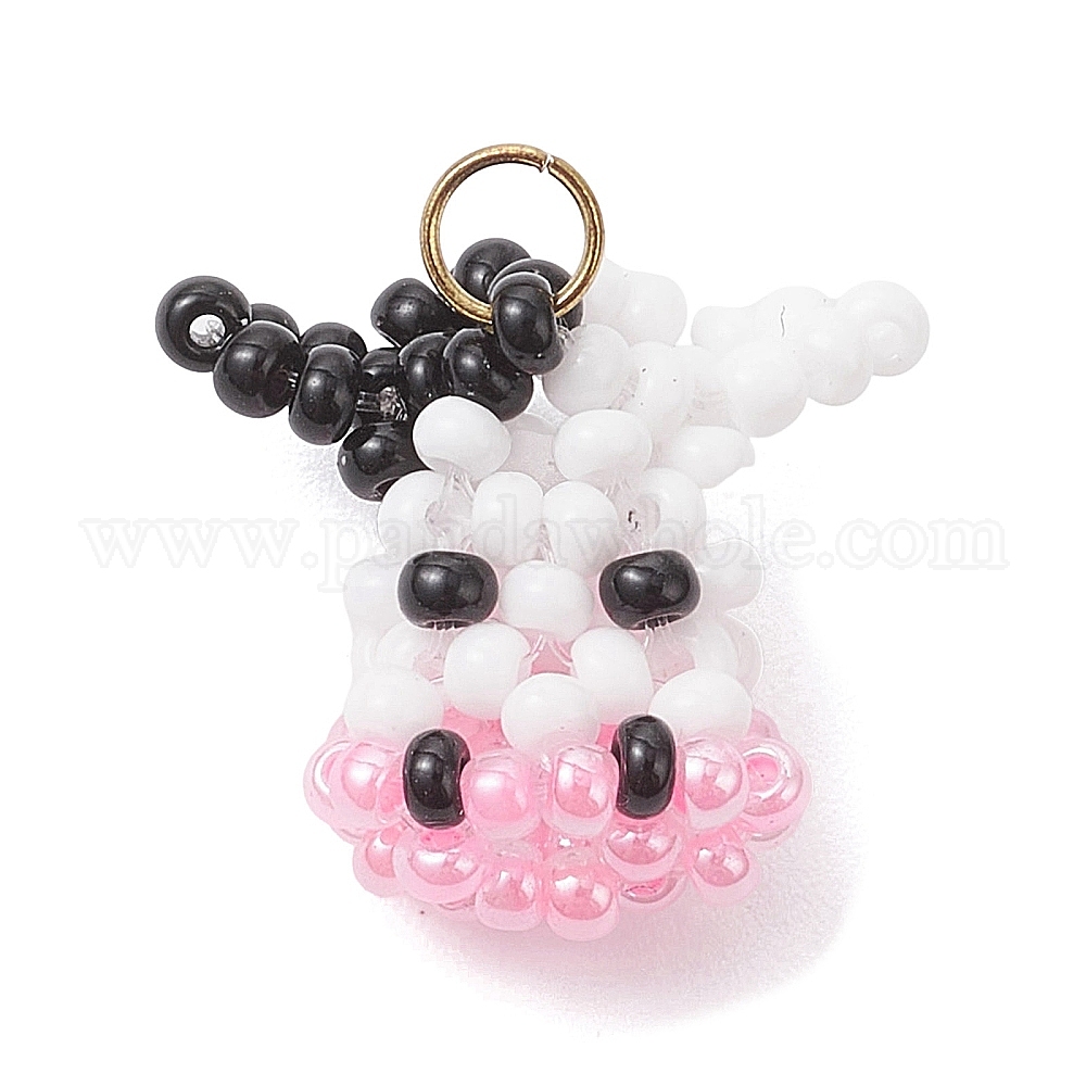 Подвески в виде коровы из стеклянного бисера, с 304 кольцом из нержавеющей стали