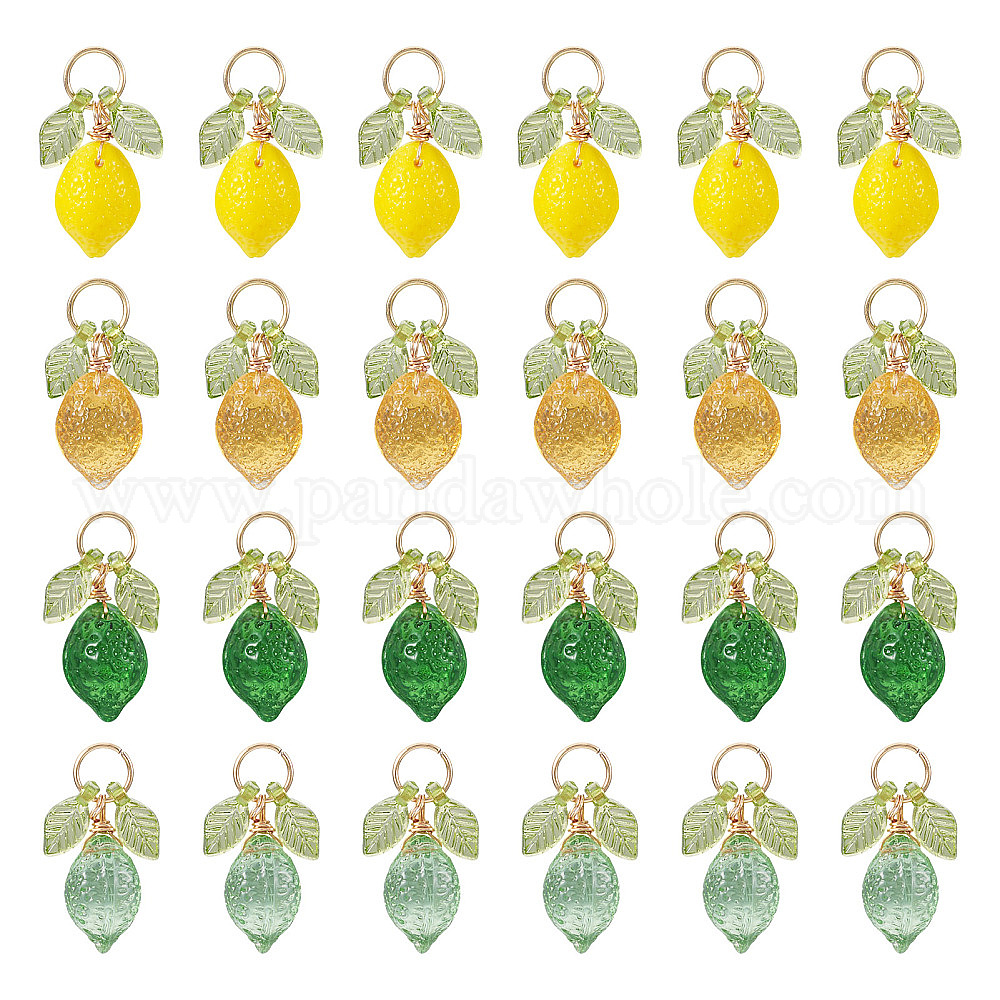 50шт. подвески в виде лимона из акрила и стекла, с 304 кольцом из нержавеющей стали