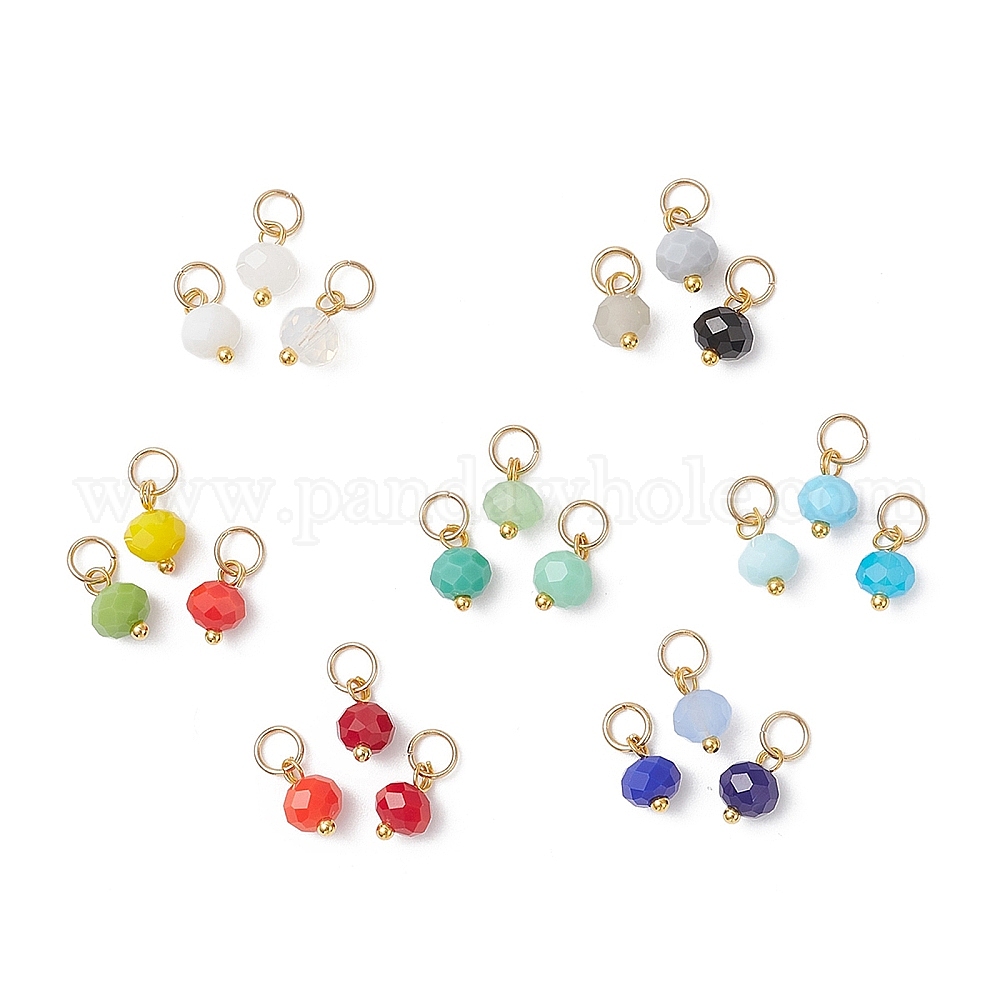 21 шт. стеклянные бусины-рондели, с открытыми пружинными кольцами из нержавеющей стали 304, граненые
