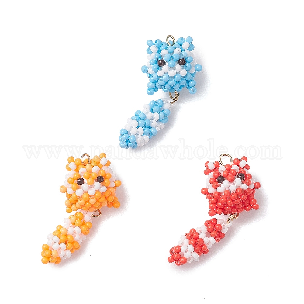 • Оранжевый Подвески в виде кошек из стеклянных бусин, с круглой бусиной из окрашенного в технике выпечки стекла и 304 петлей из нержавеющей стали, оранжевые, 39.5x16.5x4 мм, отверстие : 2.5 мм