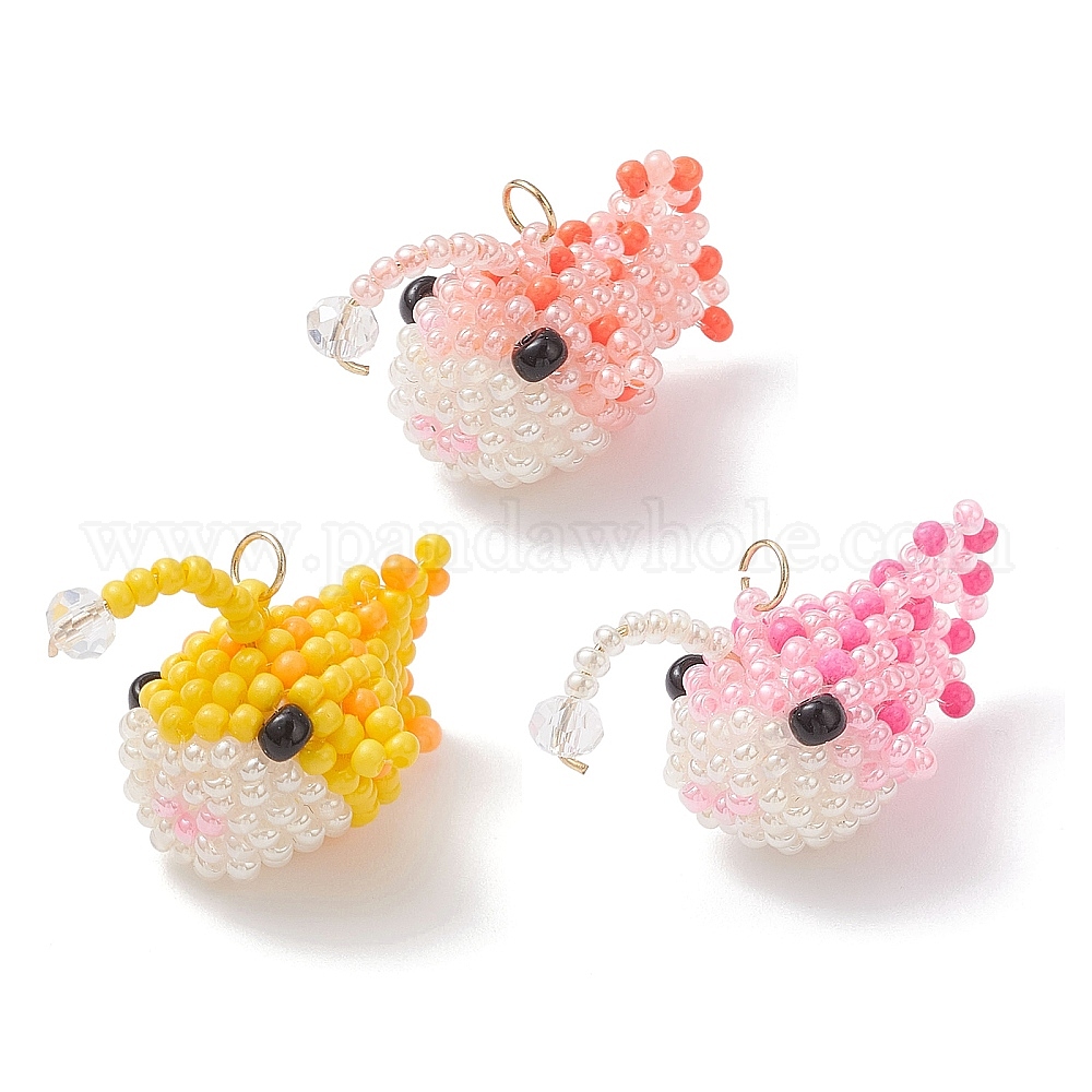 Подвески в виде рыб-фонарей из стеклянных бус, с 304 кольцами из нержавеющей стали