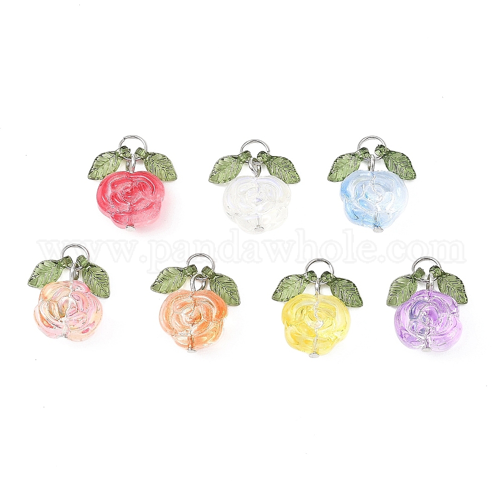 7 шт. 7 цвета прозрачные обычные стеклянные подвески, роза, с акриловыми и 304 нержавеющими кольцами для соединения, разноцветные