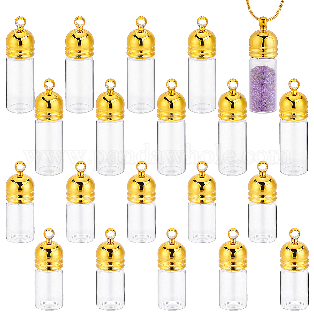 20шт. 2 варианты прозрачных стеклянных подвесок в виде бутылочек желаний, с винтовой крышкой из сплава