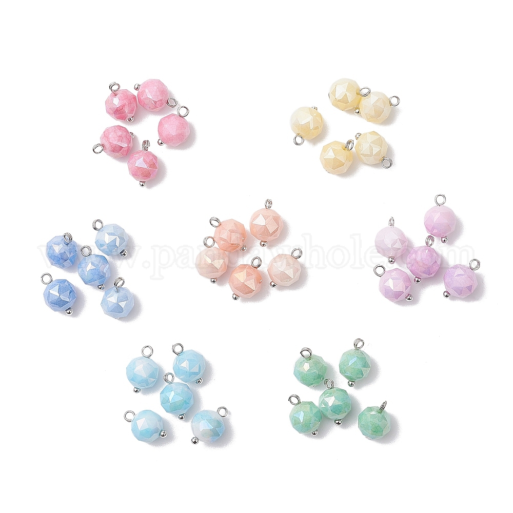 7шт. латунные стеклянные подвески, круглые, граненые, два тона