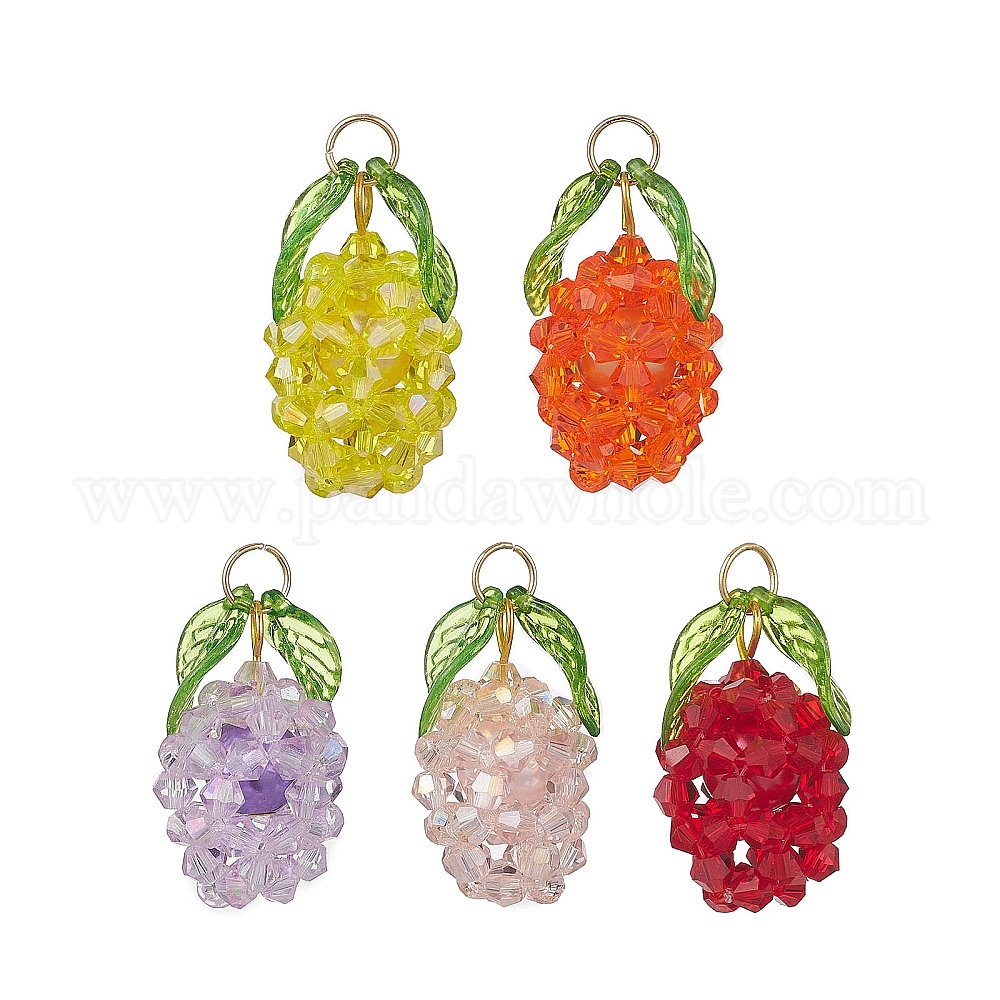 Стеклянные подвески, ананас, с 304 кольцами из нержавеющей стали, граненые, с покрытием AB цвета