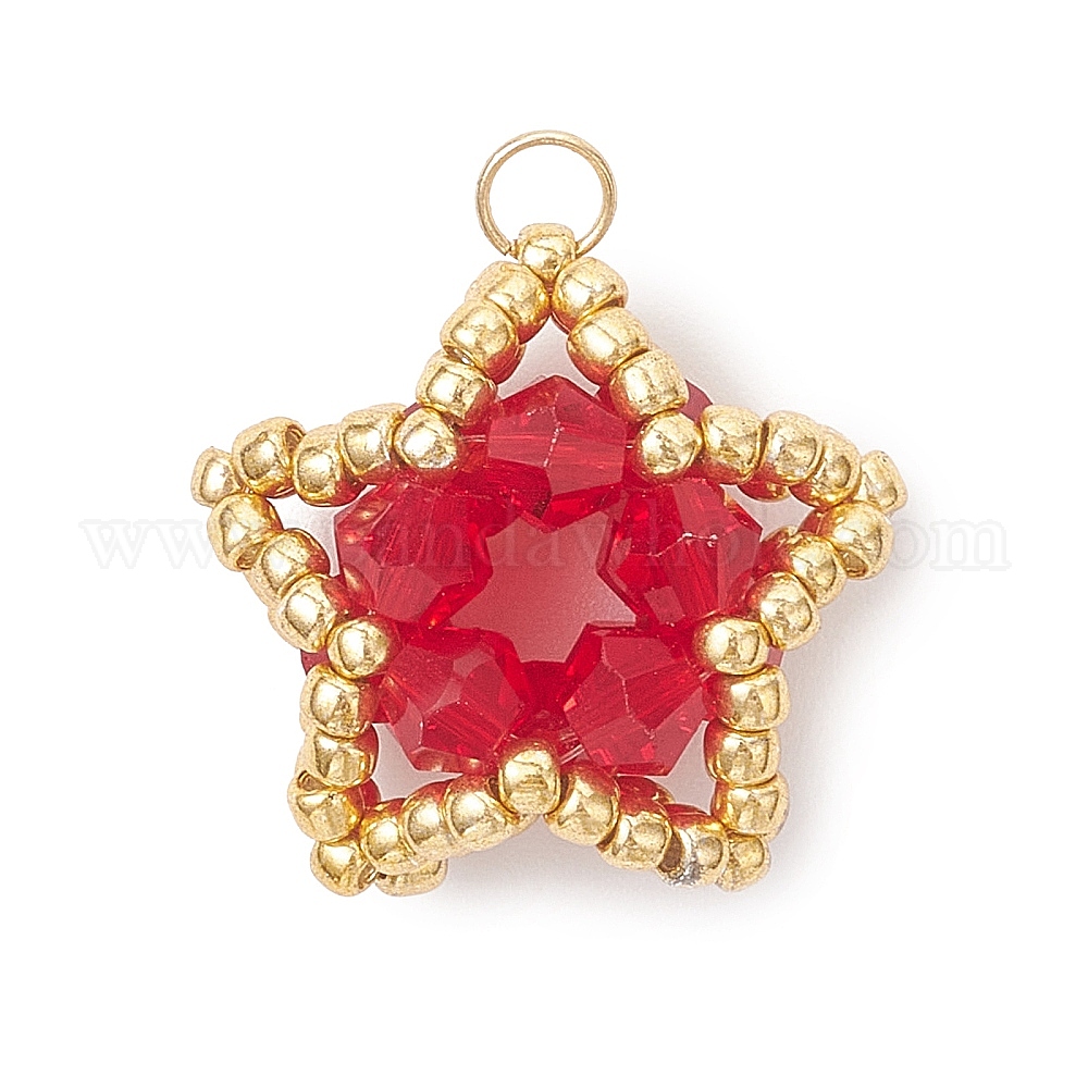 • Красный Подвески-звезды из стеклянного бисера, с 304 открытым соединительным кольцом из нержавеющей стали и стеклом, граненые, красные, 18.5x19x10.5 мм, отверстие : 3 мм