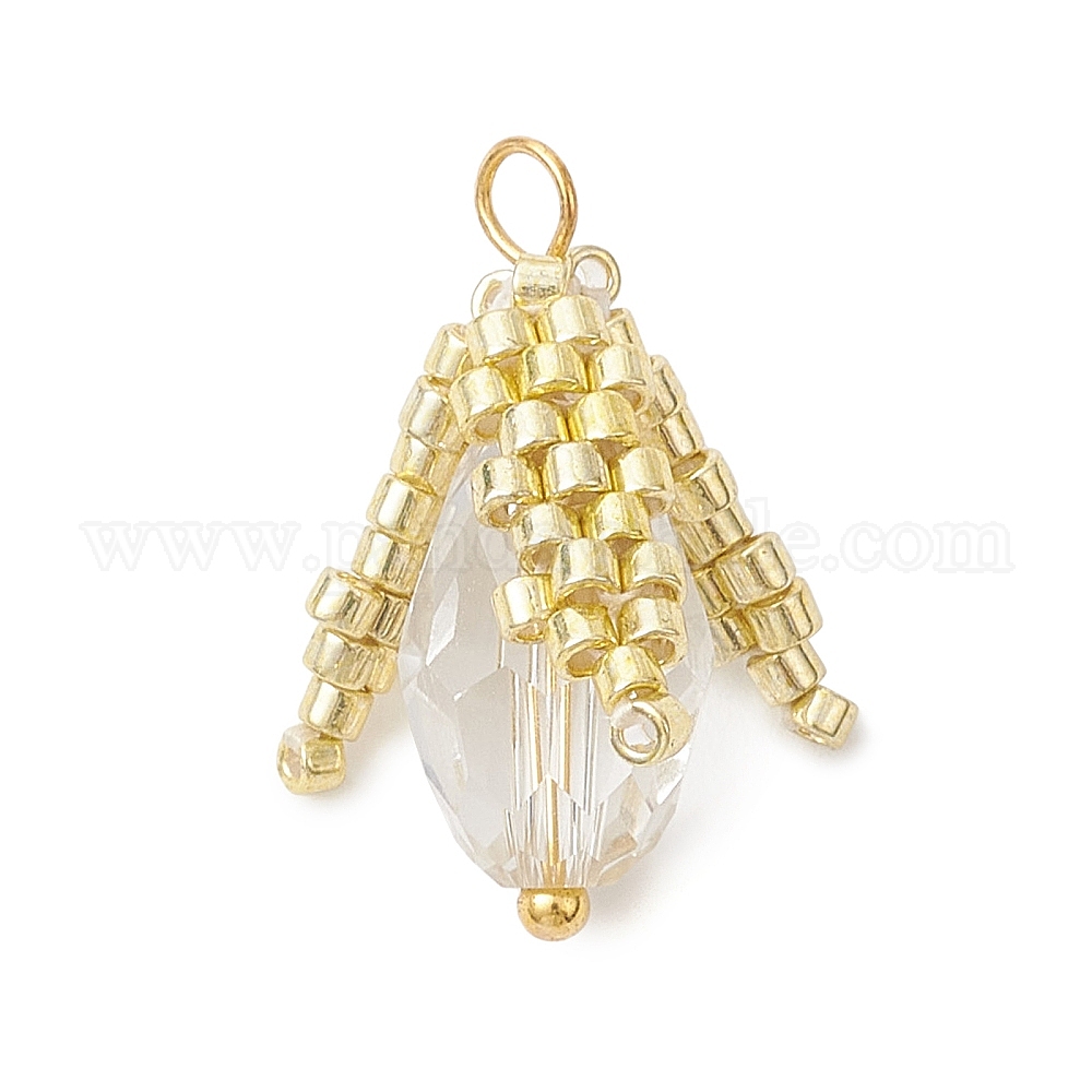 Подвески-бутоны из стеклянных бисера, со стеклом и латунной петлей, золотые, граненые