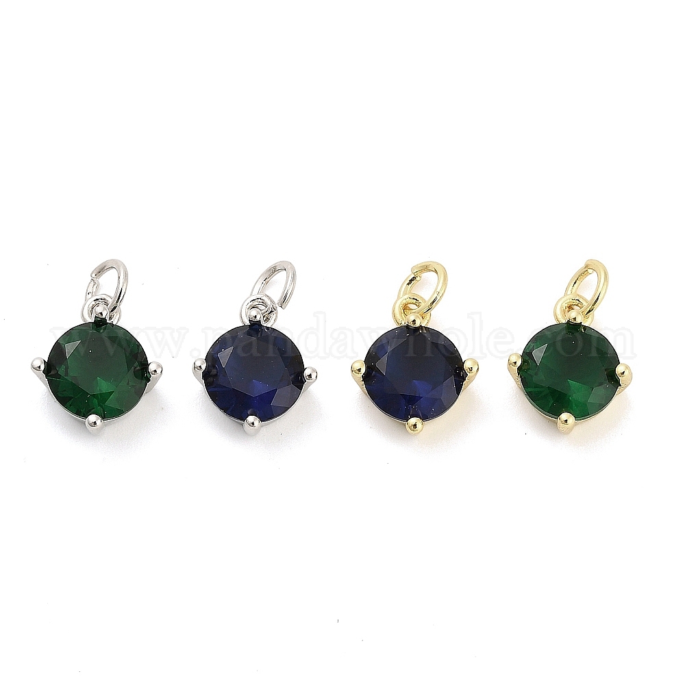Латунь стекло кулоны, плоско-круглые, долговечный, стойки покрытие, без свинца и без кадмия, граненые