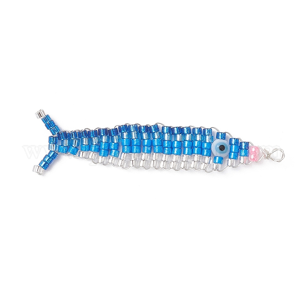 • Темно-Голубой Подвески из медной проволоки с бисерной оболочкой в виде тихоокеанской сайры, с ламповым глазом, глубокое синее небо, 54.5x13.5x2.5 мм, отверстие : 1.8 мм