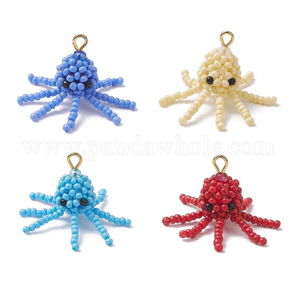 Подвески в виде осьминога из стеклянных бусин, с золотыми железными петлями