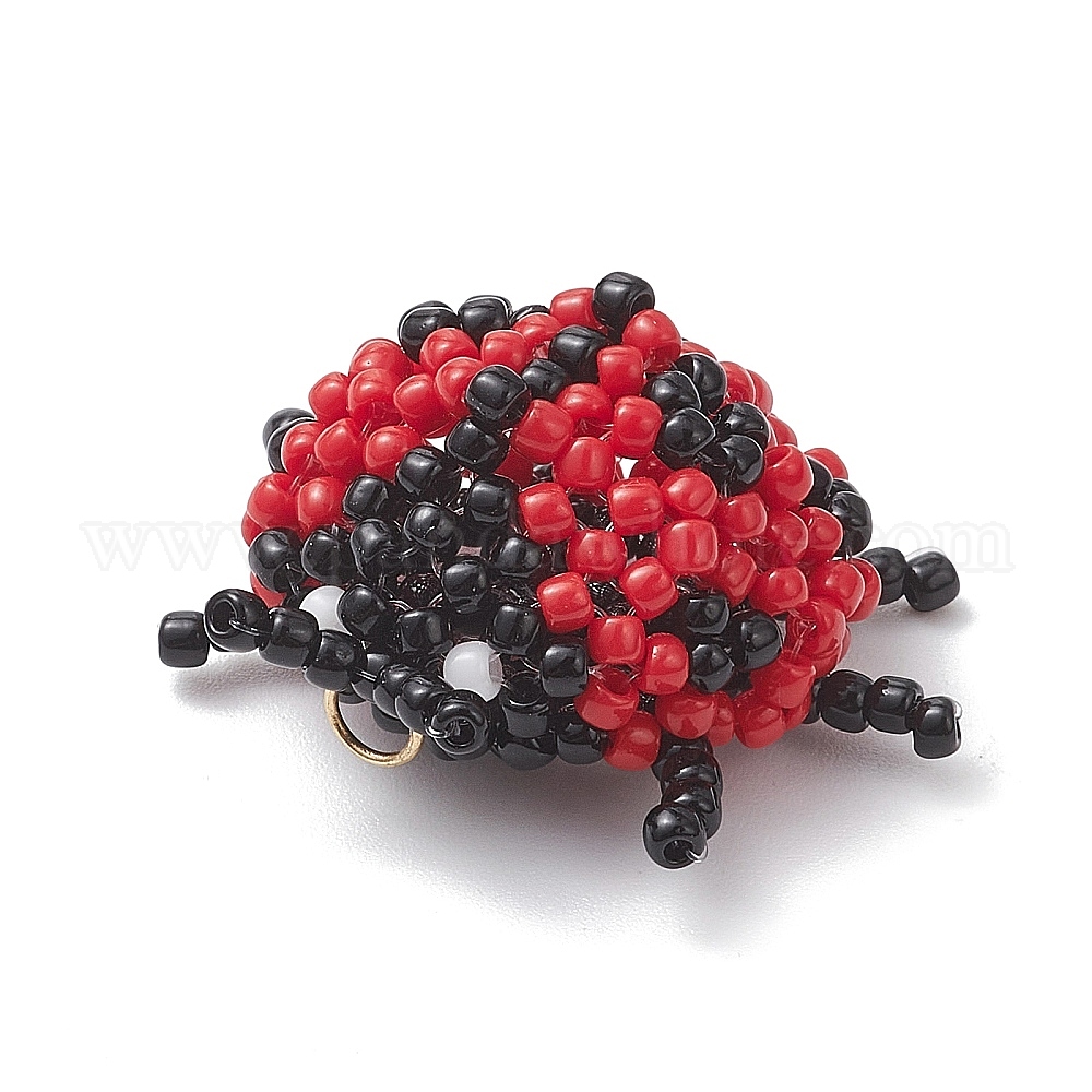 • Красный Подвески в виде божьих коровок из стеклянного бисера Toho, с 304 кольцами из нержавеющей стали, реальный 18 k позолоченный, красные, 26x30x10 мм, отверстие : 3 мм
