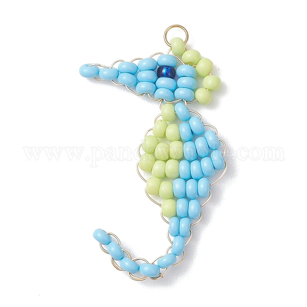 Подвески из стеклянного бисера в виде морского конька, с медной проволокой и 304 соединительными кольцами из нержавеющей стали