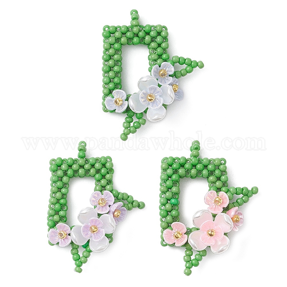 Прямоугольник из бисера с цветочными подвесками, подвески из смолы и бисера