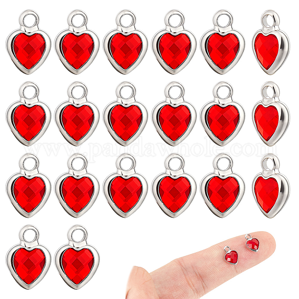 20шт. латунные стеклянные подвески, сердце, граненые