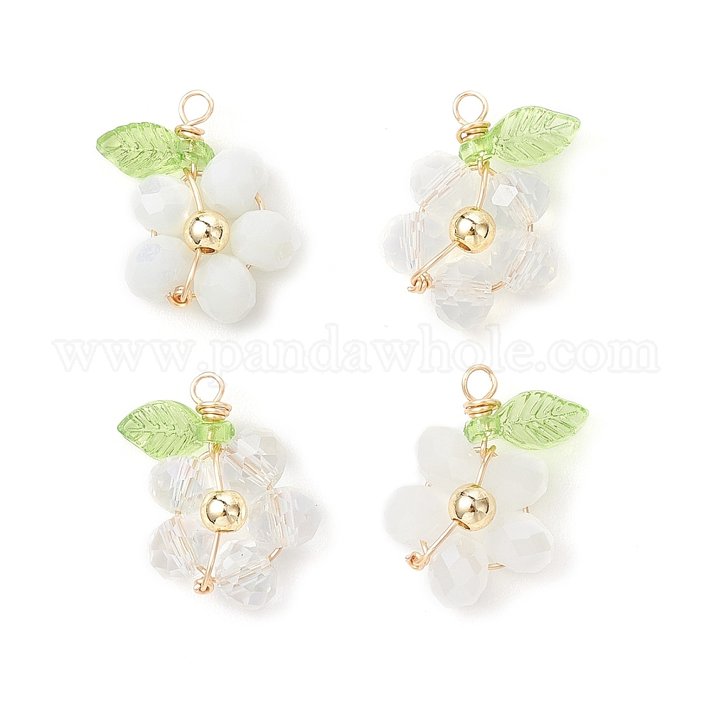 4шт 2 стили стеклянные подвески, цветок и листья, с акриловой и медной проволокой, граненые