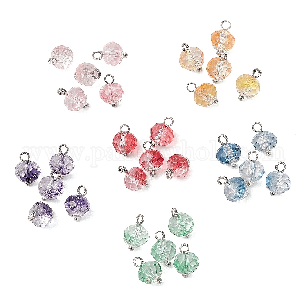 6подвески из стекла градиентного цвета, шарм рондель, с железными бусинами и латунными петлями, граненые