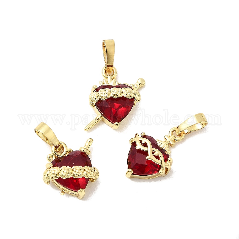 Латунь стекло кулоны, сердце, долговечный, без кадмия и без свинца, граненые