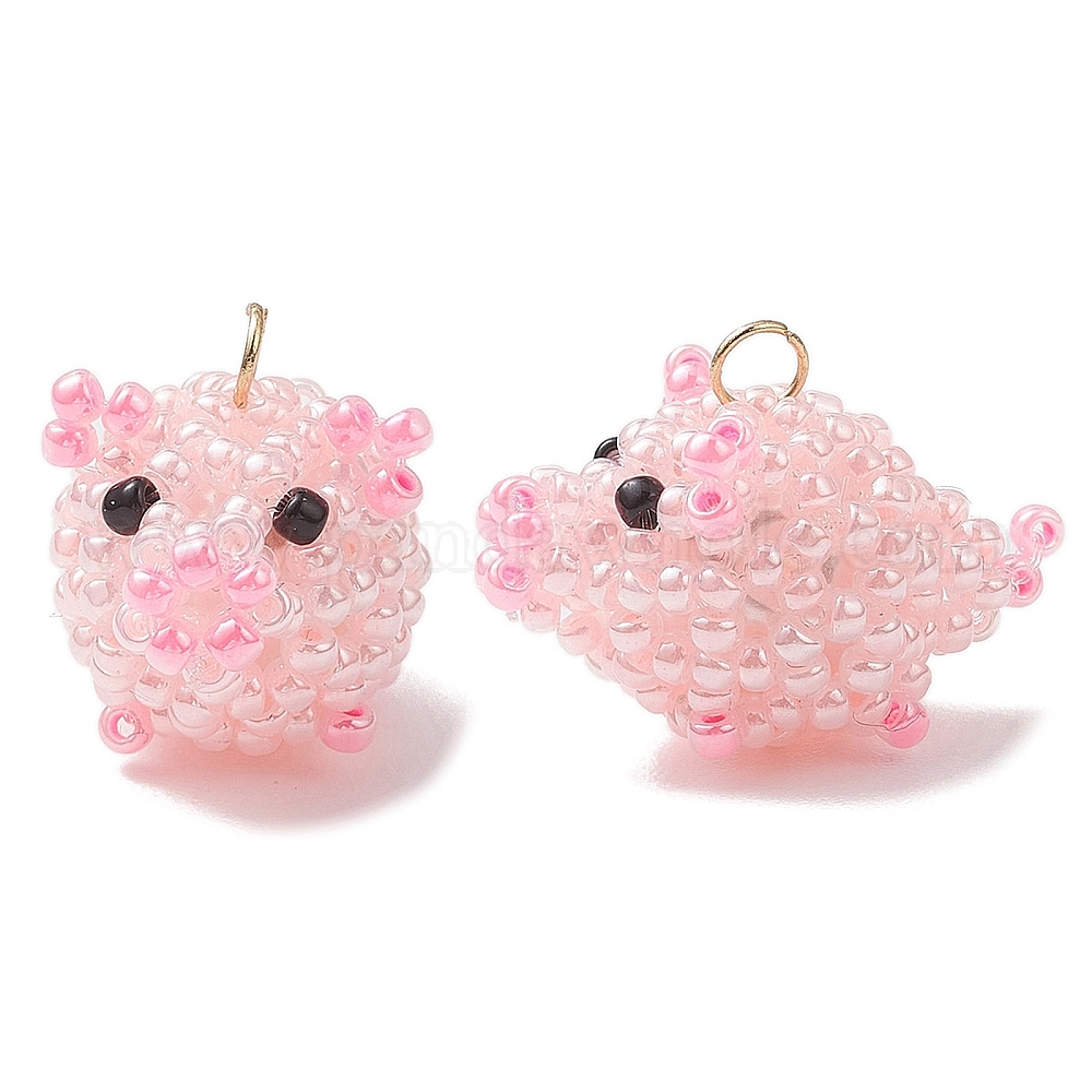 Подвески в виде свиньи из стеклянного бисера, с 304 кольцами из нержавеющей стали, реальный 18 k позолоченный