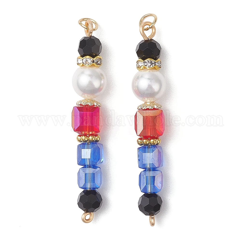 Подвески из стеклянных и ракушечных бусин и латуни, с открытыми пружинными кольцами из нержавеющей стали 304, граненые