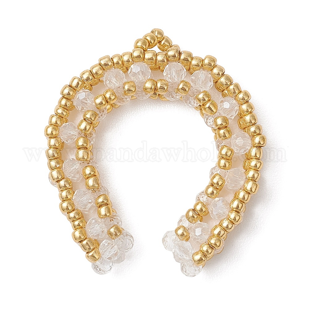 Подвески в виде подков из стеклянного бисера, со стеклом