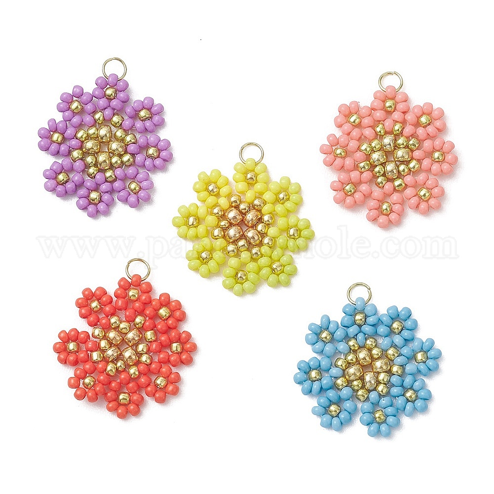 Подвески-цветы из стеклянных бус, с 304 нержавеющей стали, реальный 18 k позолоченный