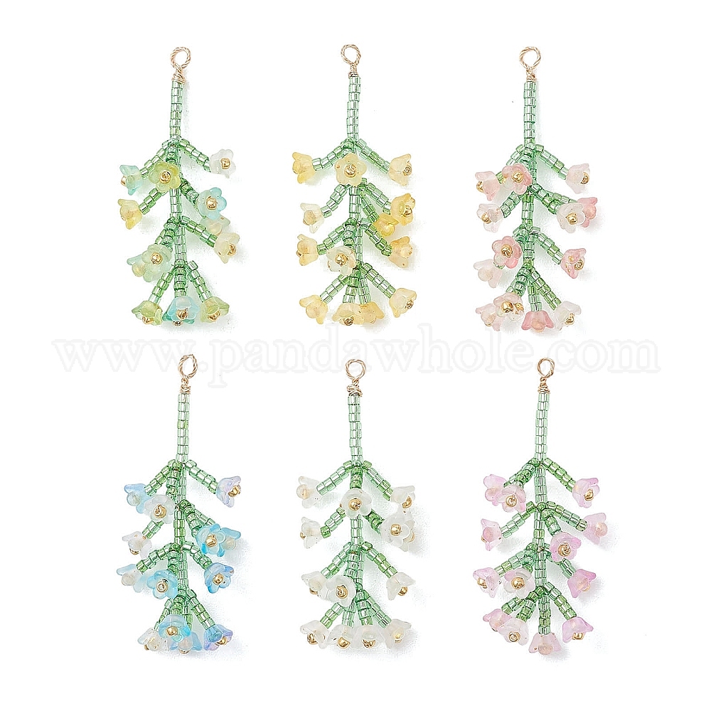 6 шт. 6 цвета стеклянные бусины цветы большие подвески, с акриловой и медной проволокой, золотой свет