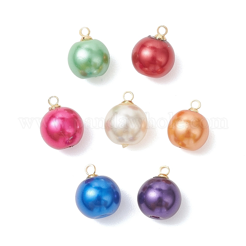 Круглые подвески из перламутрового стекла с латунными креплениями, расписанные методом запекания., золотые