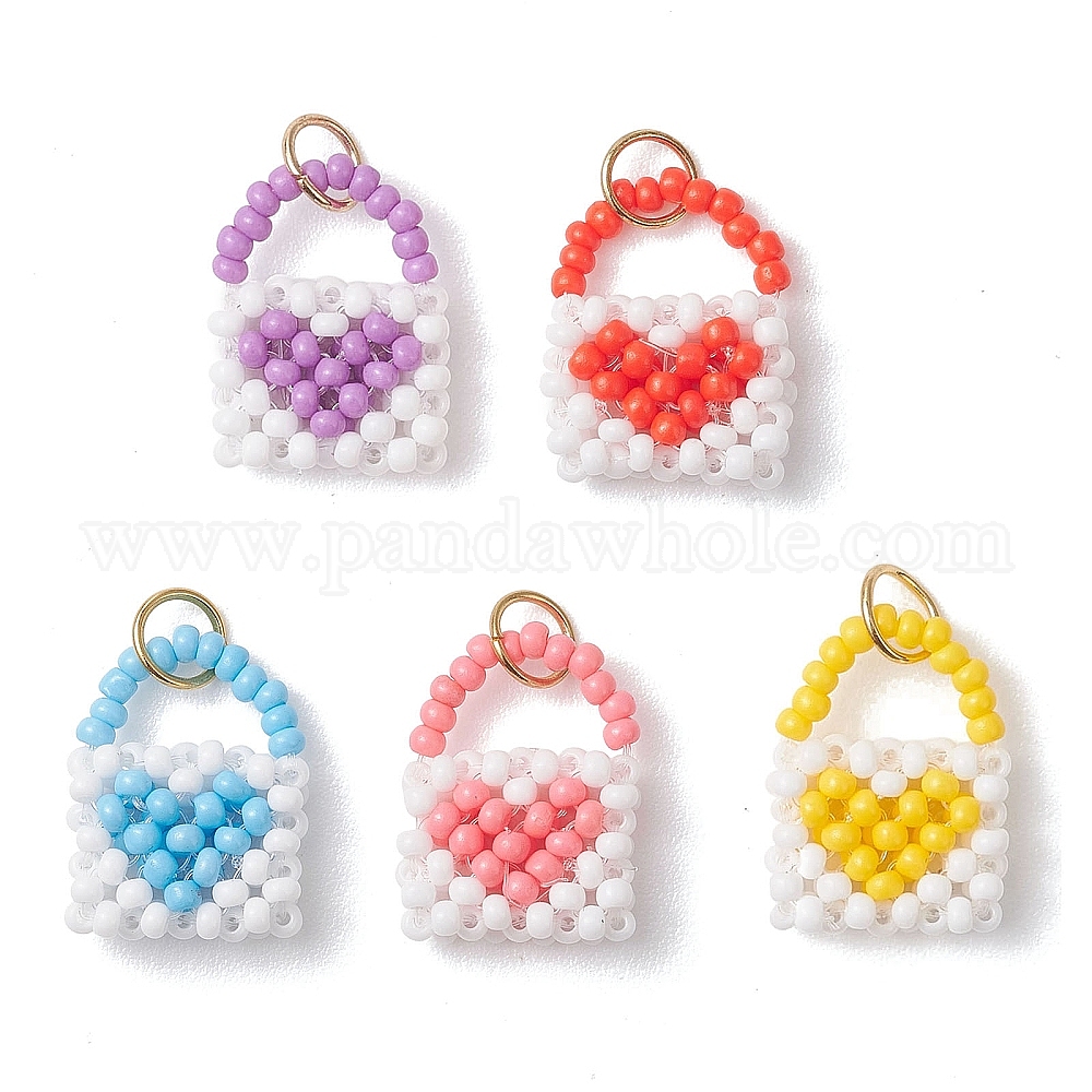 Подвески для сумочек из стеклянного бисера, с 304 нержавеющей стали, золотые