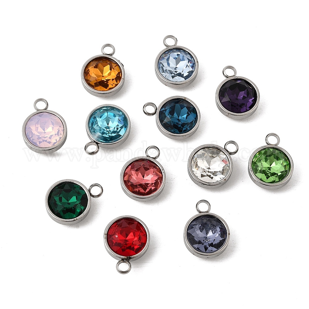 12Тема камней по знаку зодиака 304Подвески из нержавеющей стали, плоский круглый шарм, с k 9 стеклом, полировка, граненые